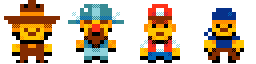 My initial task was to choose a recognizable shape and color for the main character, and develop the whole concept around it. I'm very attached to the PICO-8 palette and wanted something that resembled it when it comes to saturation and brightness, so I started with a very bright yellow, a solid black, a brown for shades and another very contrasting color to the define the character.